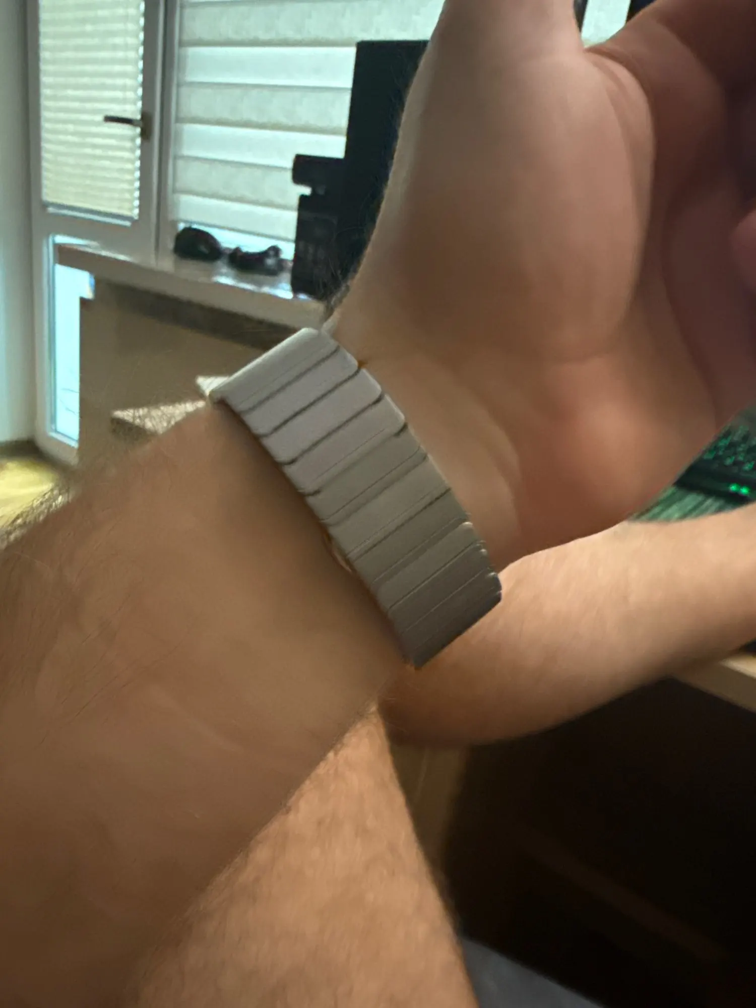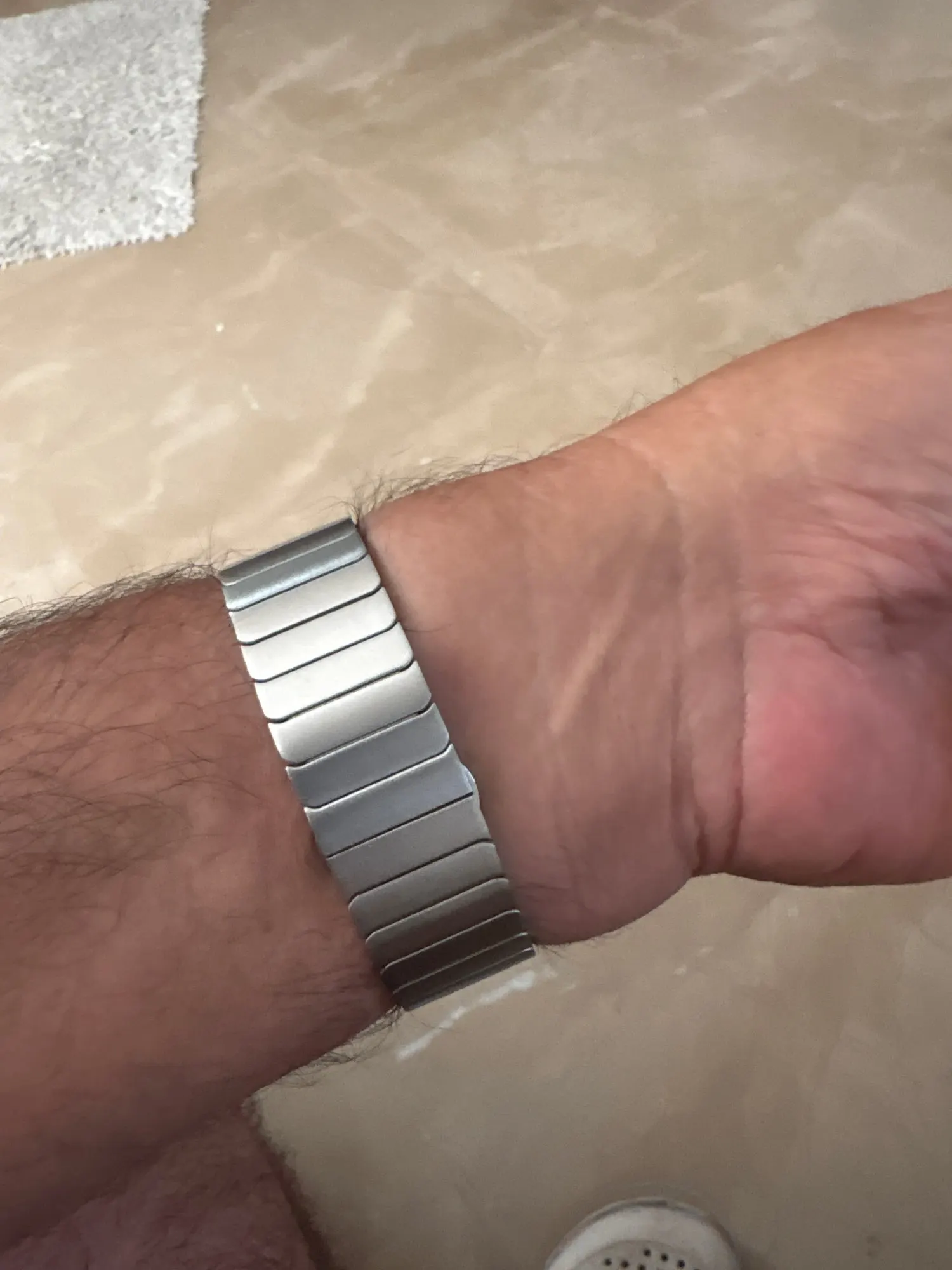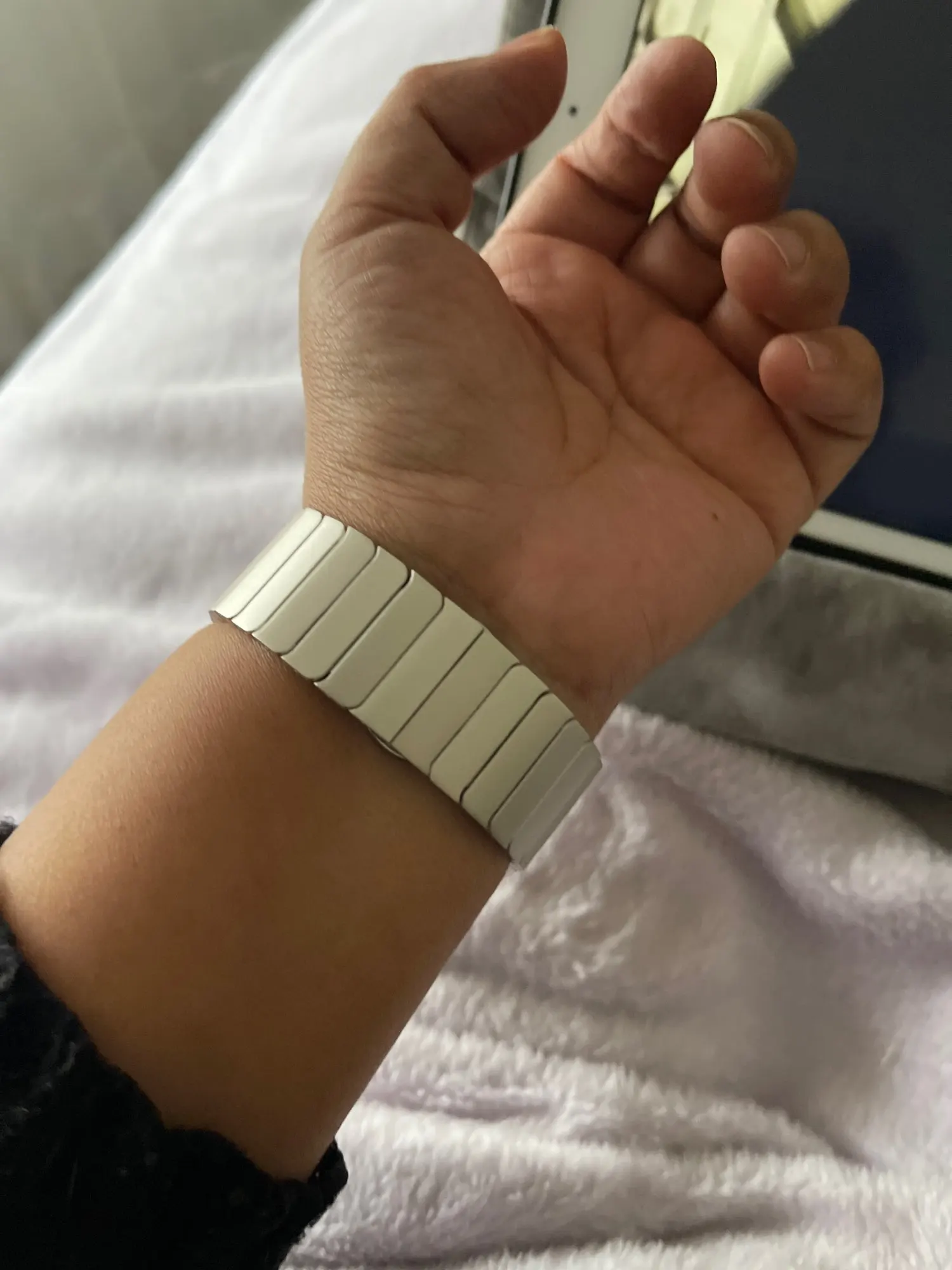 Tenha cuidado, pois a pulseira e o pino enviados para a pulseira são frágeis e quebram facilmente. Se você torcer levemente a pulseira para o lado enquanto pressiona, ela se soltará facilmente. É fosco e bonito, e tudo está em boas condições, mas eu o devolvi. O motivo é que um lado não trava. Parece que não consigo consertar sozinho. Embora os reembolsos demorem, correu tudo bem com duas fotos.