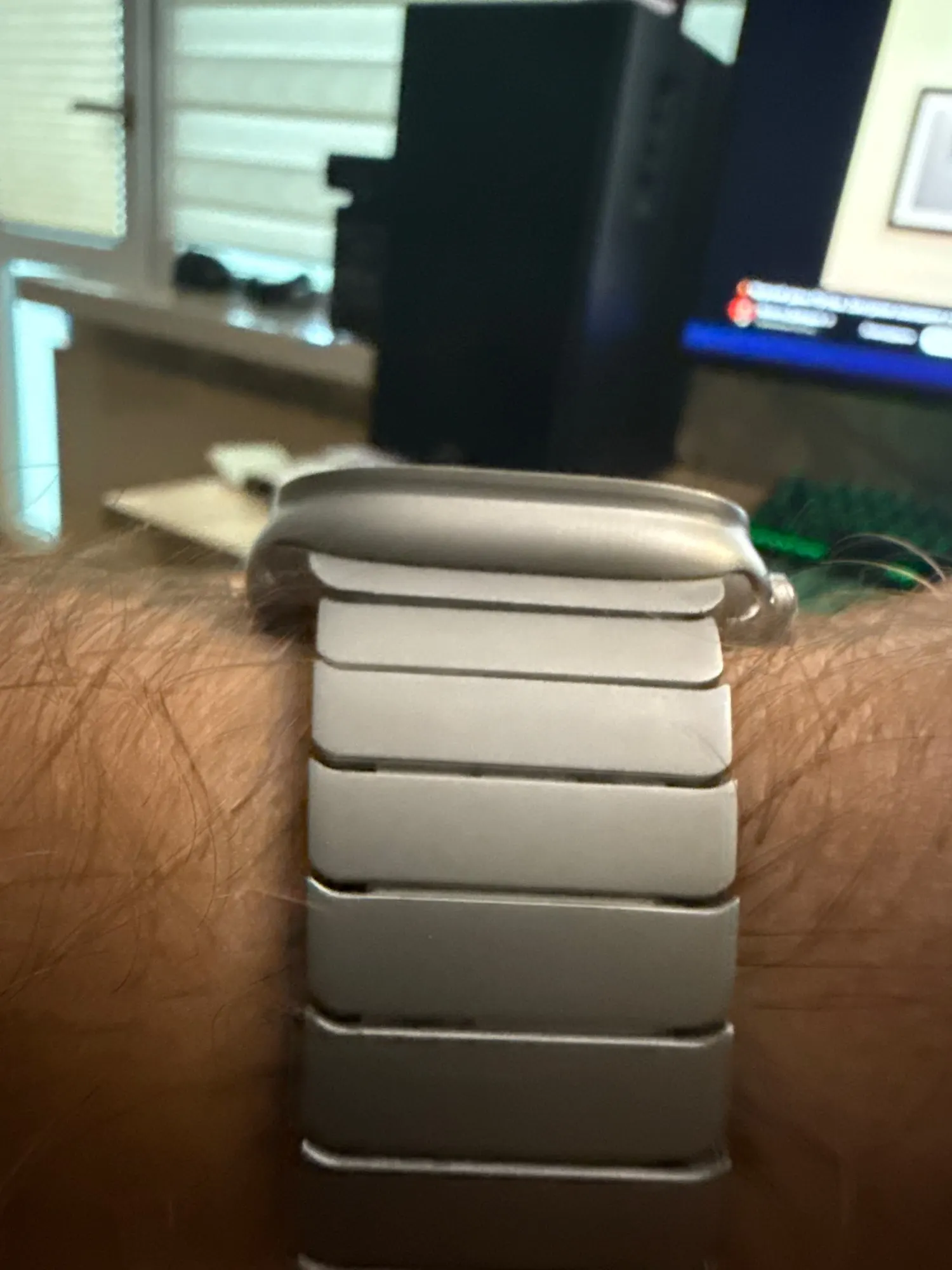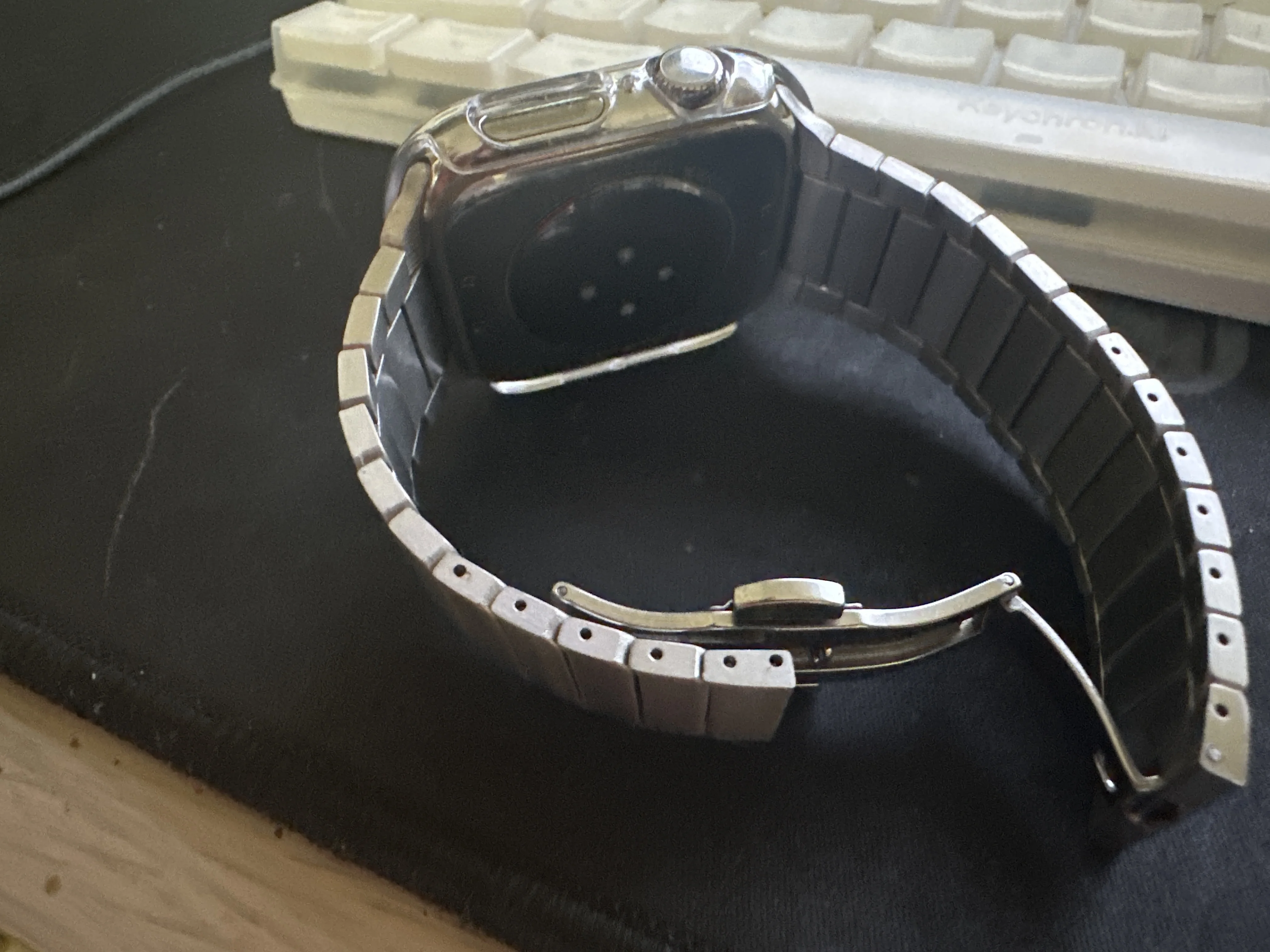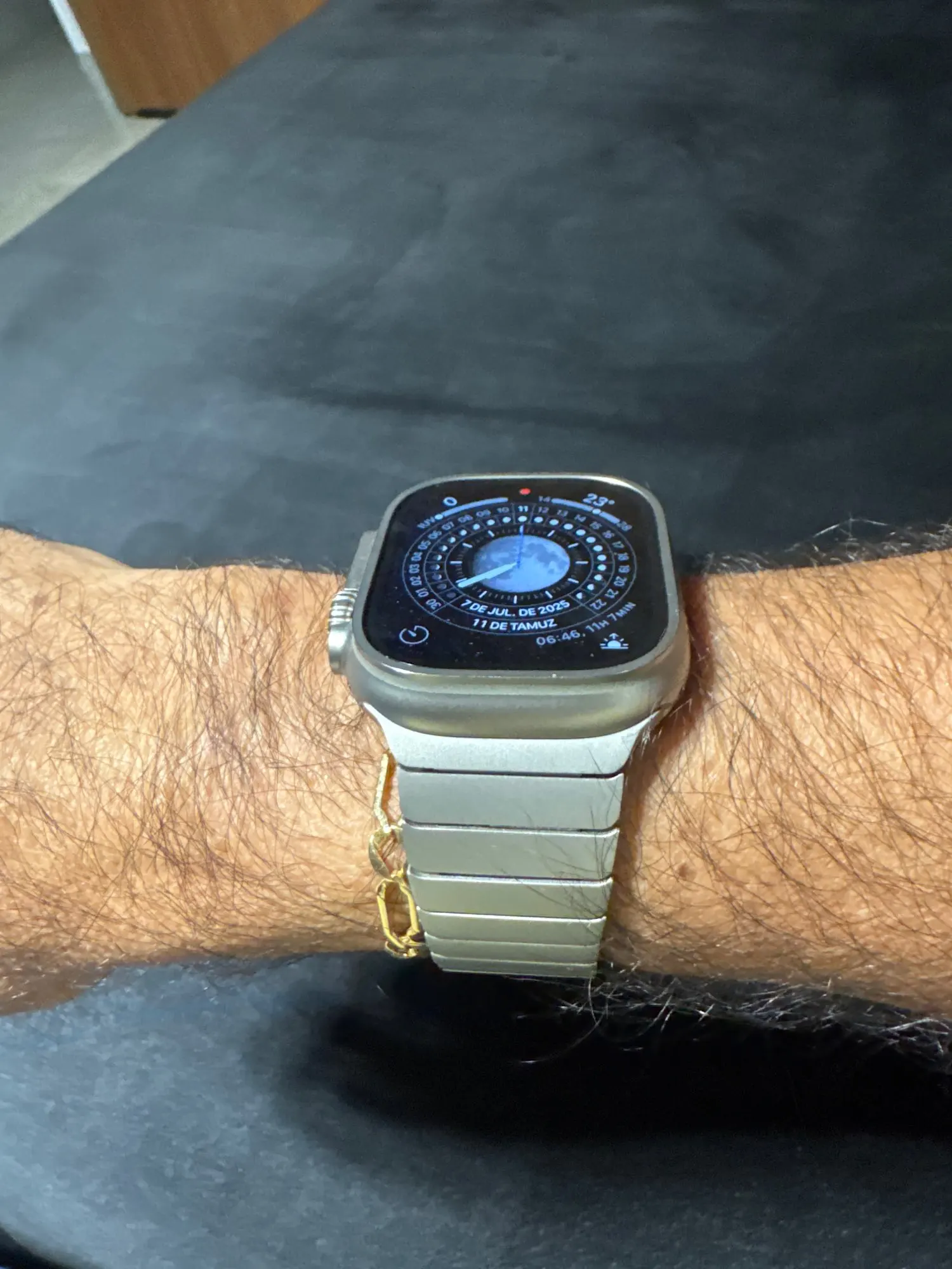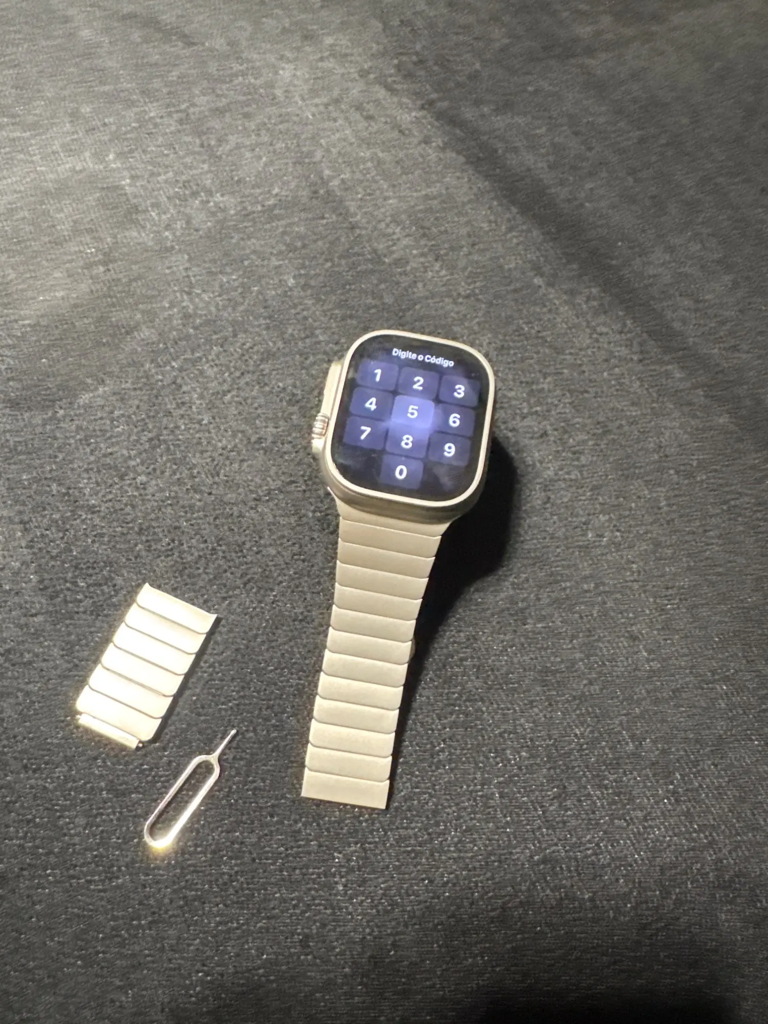 Meu relógio é um Apple Watch 10 Titanium Natural de 46 mm.