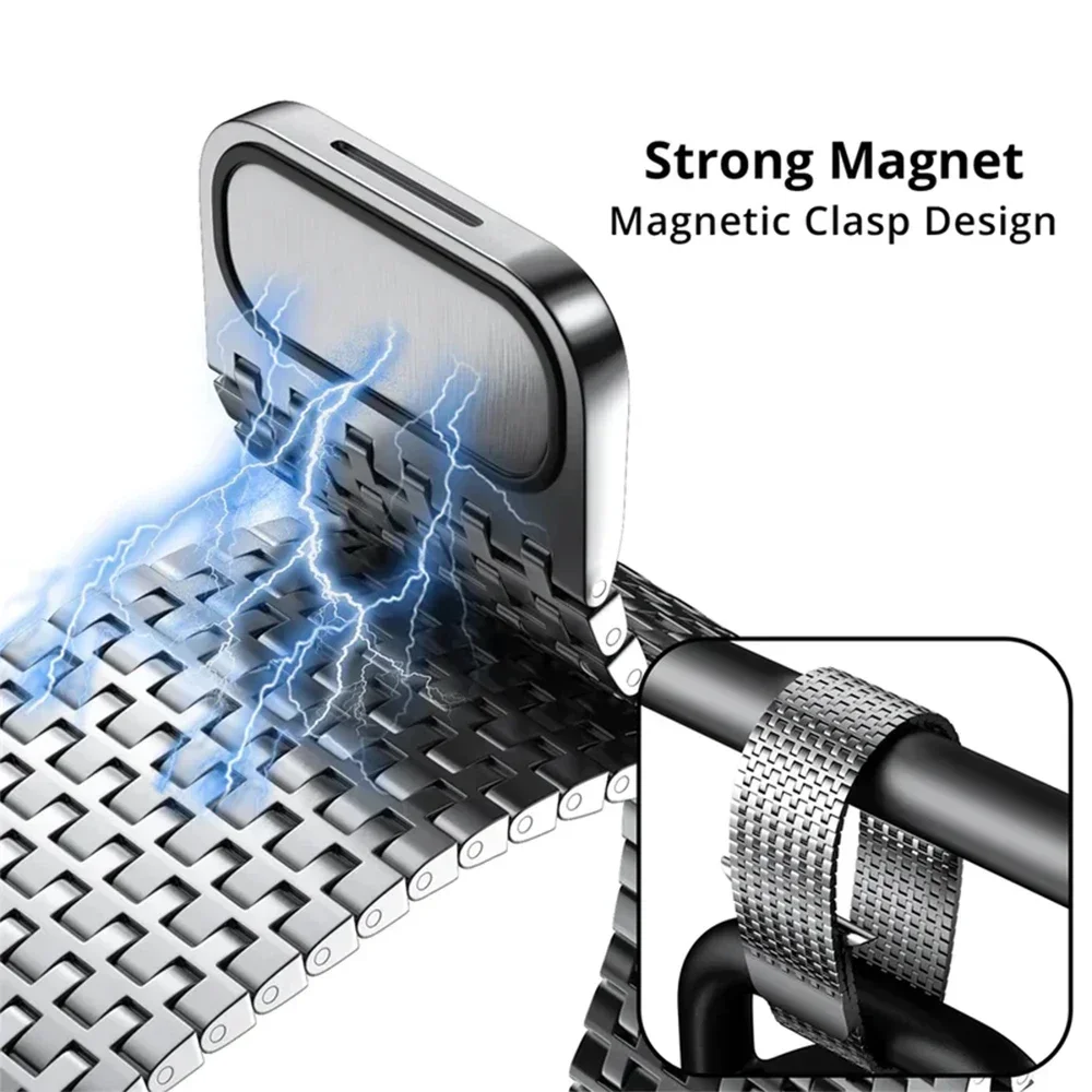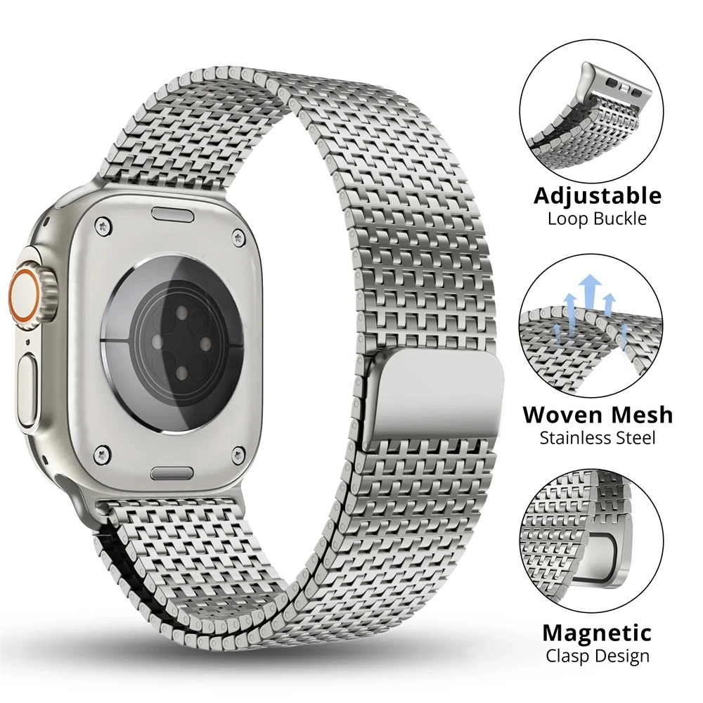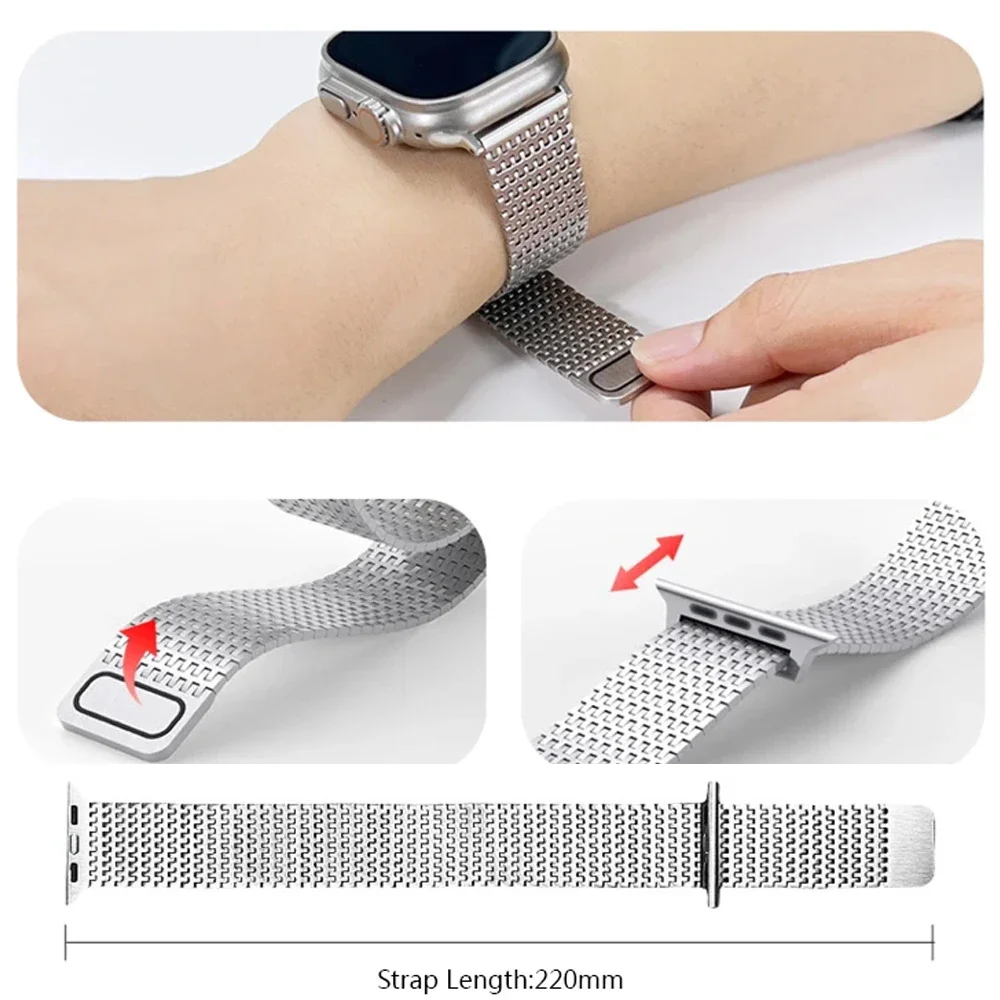 Pulseira de laço magnético para apple watch ultra 2 49mm 42 44 45mm pulseira milanesa de aço inoxidável para iwatch 9 8 7 6 5 se 3 40 41mm